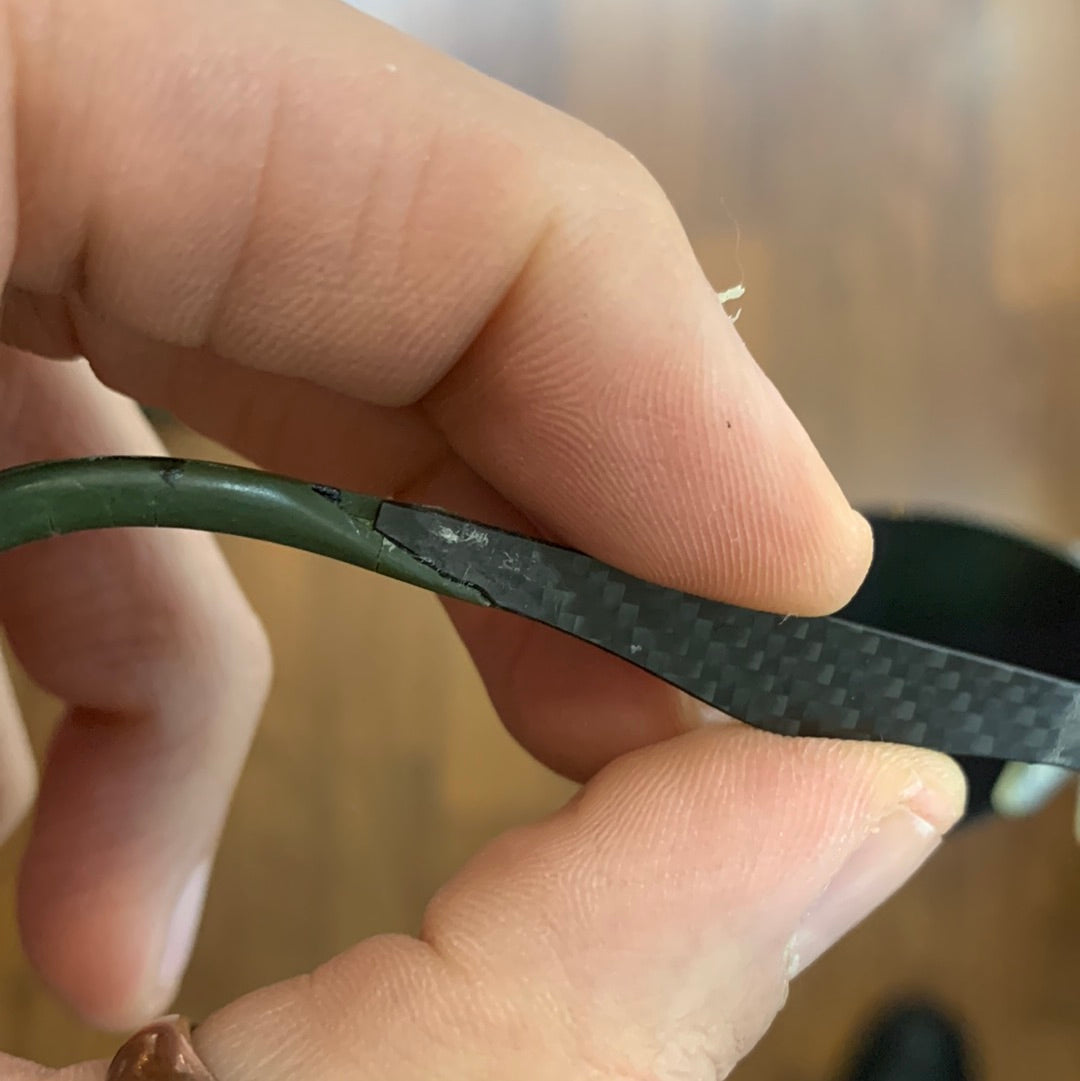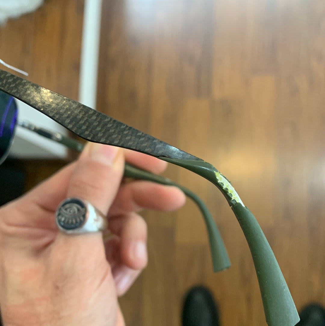 L’asta destra è un po danneggiata, abbiamo preferito lasciarla originale e non mettere un pezzo commerciale, anche perche le aste sono in Carbonio. E per questo modello fuori produzione introvabili!