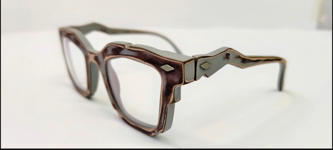 L’estetica classica di questo tipo di montatura si unisce a un effetto délabré, ovvero volutamente imperfetto.